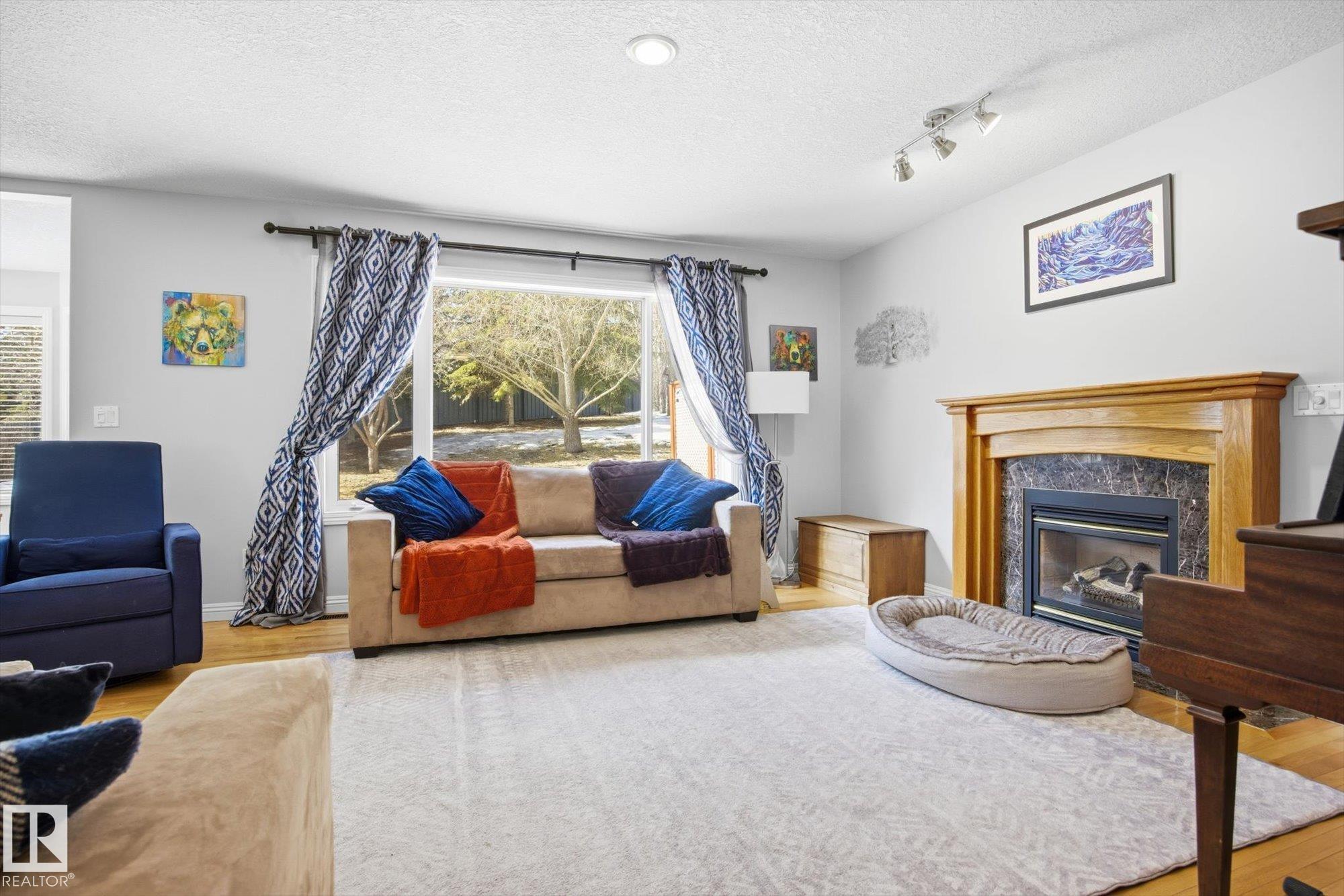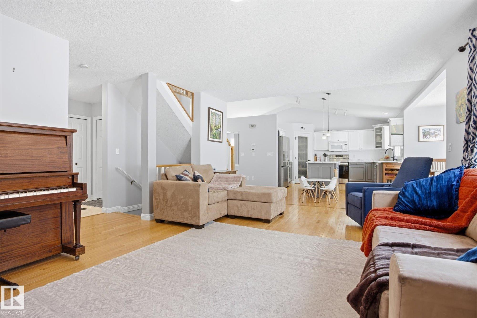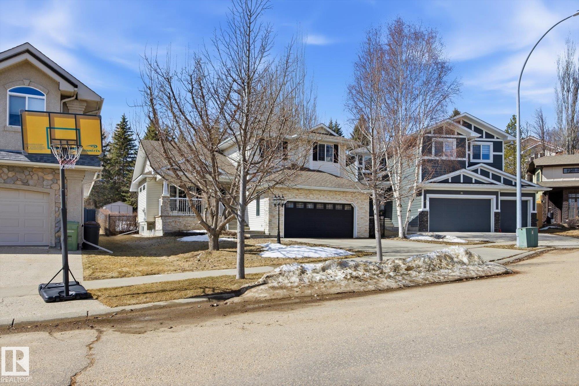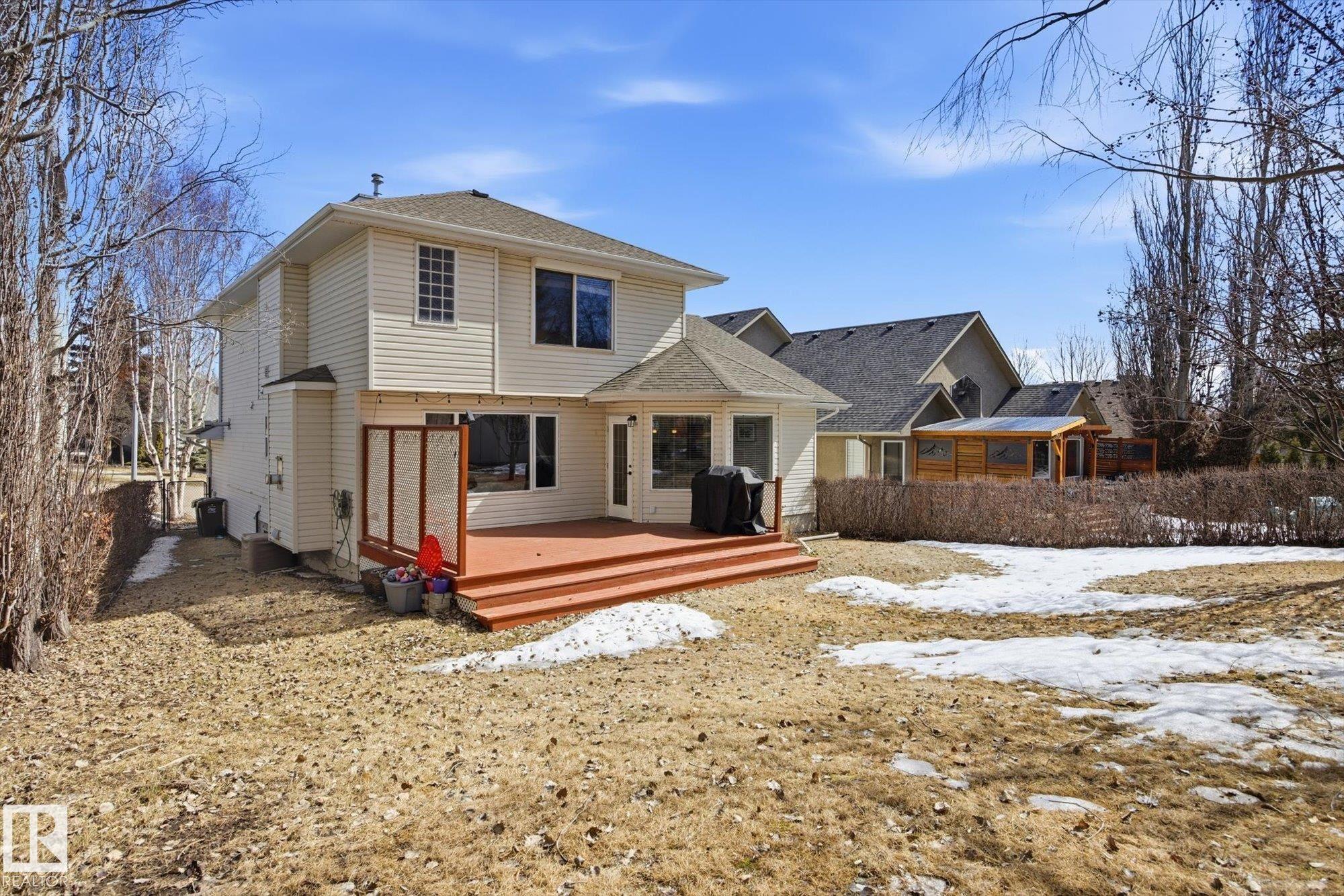 WELCOME to an AMAZING LOCATION & YARD in the heart of sought after Oakmont! This AIR CONDITIONED home boasts over 2,900 sqft of finished living space in a cul-de-sac location near the river valley trails, parks, & all the beauty St. Albert is known for. With 5 bedrooms, 3 bedrooms up & 2 more in the fully finished basement, & 3.5 baths, there’s room for everyone to live, work, & play! The BRIGHT main floor is filled with NATURAL LIGHT & features a spacious kitchen with newer appliances, main floor laundry, & a open concept layout built for everyday family life. Upstairs offers hardwood floors, a generous primary suite with walk-in closet & 4pc ensuite with jetted tub. Your basement has tons of space with storage, 2 bedrooms, & living room. Stay cool this summer with AC & enjoy the HEATED double garage. Outside you'll LOVE the huge pie-shaped yard, a rare find, private & treed, perfect for kids, pets, & summer evenings. A fantastic family opportunity to live in one of St. Albert’s best neighbourhoods!!!