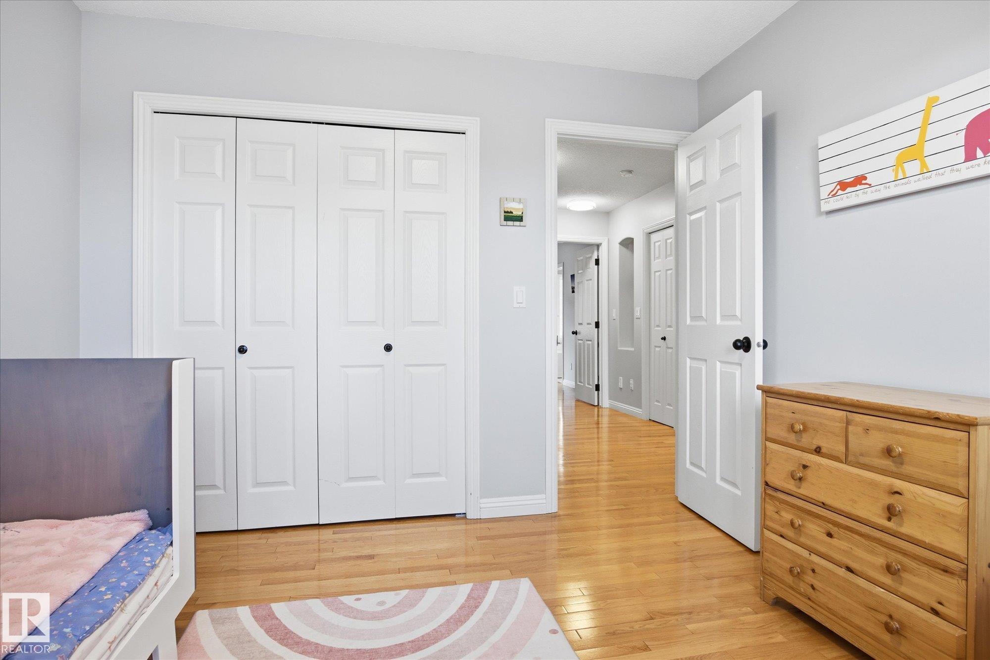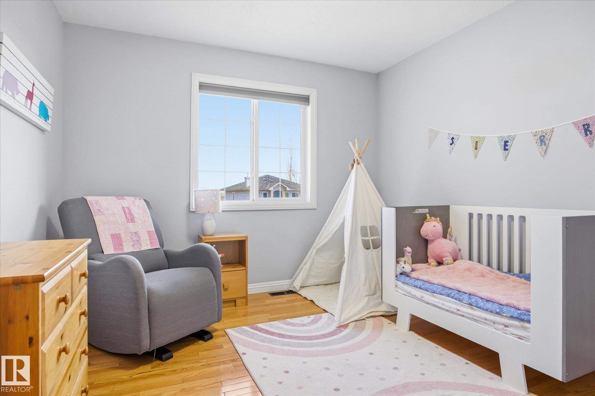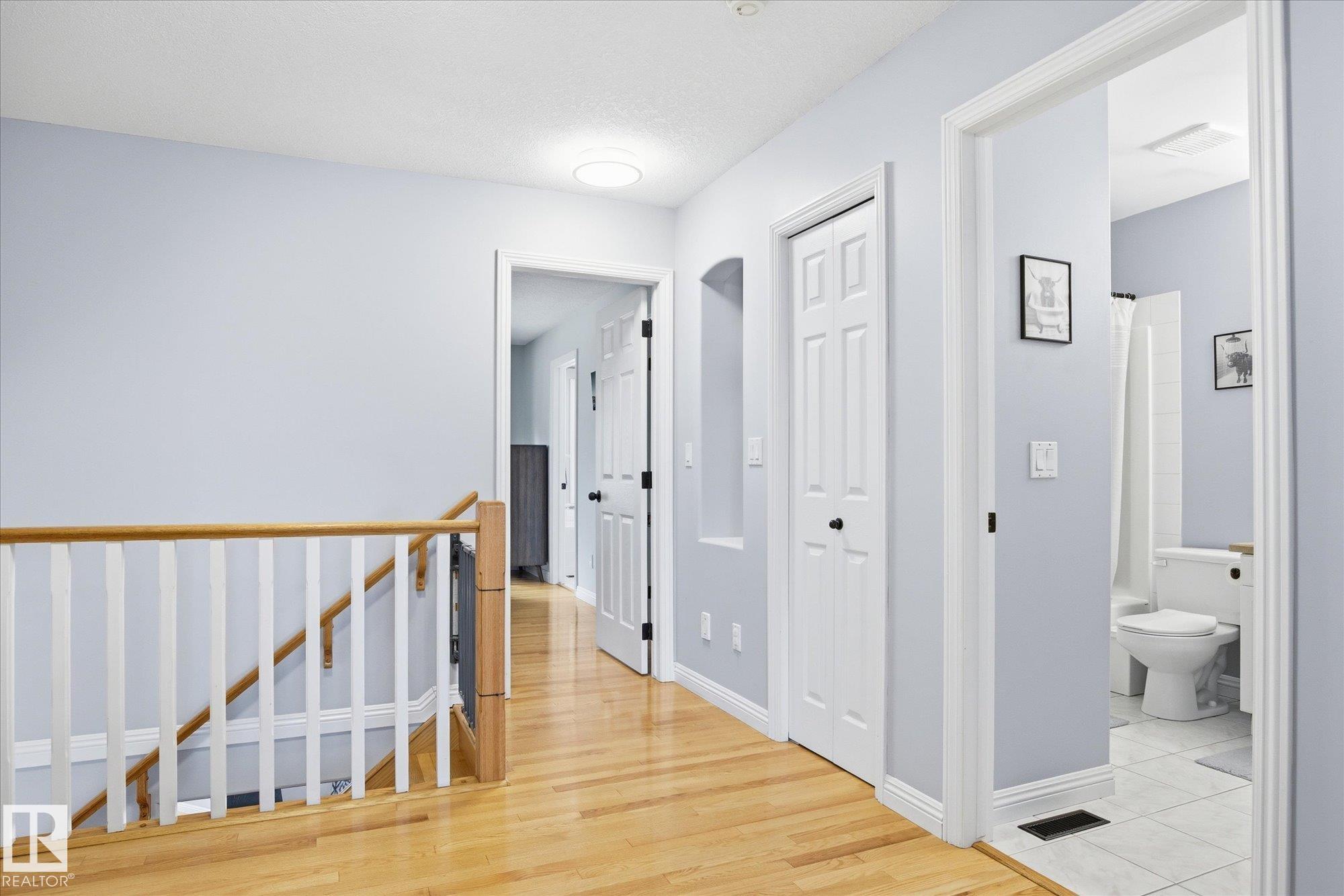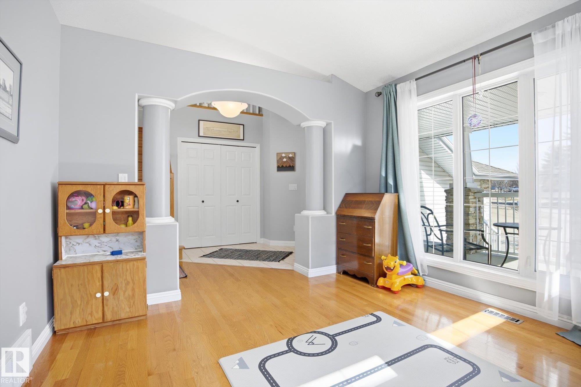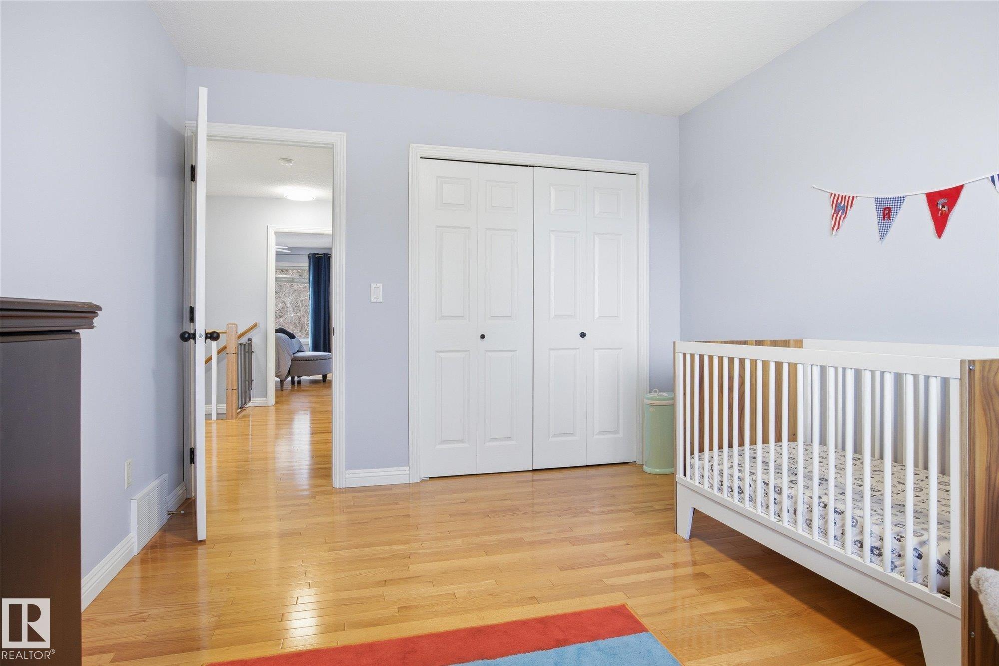 WELCOME to an AMAZING LOCATION & YARD in the heart of sought after Oakmont! This AIR CONDITIONED home boasts over 2,900 sqft of finished living space in a cul-de-sac location near the river valley trails, parks, & all the beauty St. Albert is known for. With 5 bedrooms, 3 bedrooms up & 2 more in the fully finished basement, & 3.5 baths, there’s room for everyone to live, work, & play! The BRIGHT main floor is filled with NATURAL LIGHT & features a spacious kitchen with newer appliances, main floor laundry, & a open concept layout built for everyday family life. Upstairs offers hardwood floors, a generous primary suite with walk-in closet & 4pc ensuite with jetted tub. Your basement has tons of space with storage, 2 bedrooms, & living room. Stay cool this summer with AC & enjoy the HEATED double garage. Outside you'll LOVE the huge pie-shaped yard, a rare find, private & treed, perfect for kids, pets, & summer evenings. A fantastic family opportunity to live in one of St. Albert’s best neighbourhoods!!!